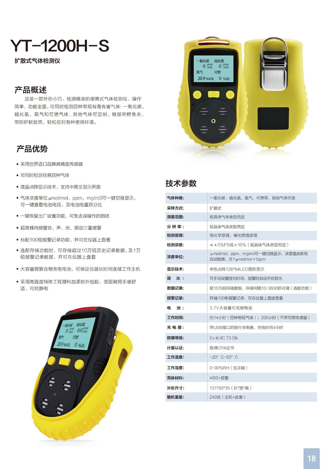 元特YT-1200H-S便携气体检测仪