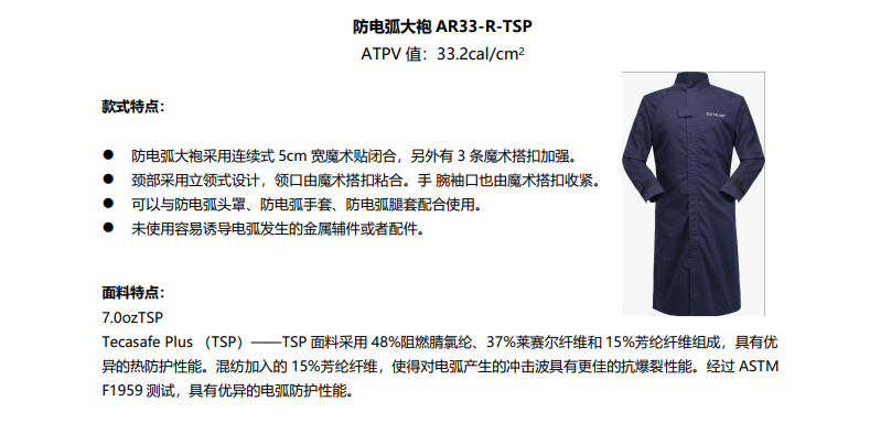 雷克兰AR33-R-TSP防电弧大袍
