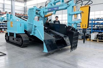 主要用于空间狭窄的洞采作业的煤矿、磷矿、铁矿、铜矿、金矿、银矿、铅锌矿等各种矿山及铁路、公路、水利、等隧道工程中碎石料采集装车,以及露天散碎物料装车作业。它是由机械手与输送机相结合,扒渣和输送装车功能合二为一,采用电动全液压控制系统的生产装置,具有环保、能耗小、的特点。扒渣机是矿山企业必不可少的先进设备,替代人工作业,将爆后的各种矿渣石料扒装到运输车辆上,是人工和其它机械的替代产品,填补了在狭小空间内无机械作业的空白。接通上级电源总开关,60型轮式扒渣机,操作起动开关的柄,照明灯亮再点动启动按钮盒停止按钮,观察油泵电机或散热器电机的转向,如果不正确,可将启动开关的手柄扳到另一个位置,刮板扒渣机,再次启动油泵。扒渣机是地下掘进、开挖、装运机械设备代替人工和间歇式机械的替代新科技产品,是快速的地下工程施工的保障。扒渣机属洞采设备,工程机械,地下开挖设,铁路隧道工程设备,隧道工程设备,公路隧道工程设备,矿山开采设备,电站引水洞工程设备,