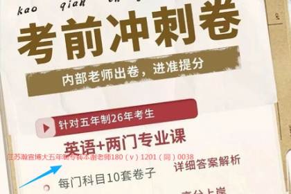 现在距离2026年五年制专转本考试已经进入,每一分每一秒都不能浪费!如果你还在为资料发愁,还在担心复习没有方向,赶紧来江苏瀚宣博大看看吧!我们的内部资料+专业辅导,会成为你冲刺本科的强力后盾。