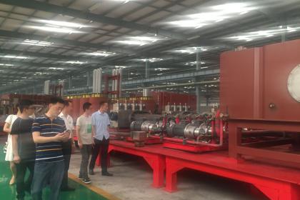 2018年7月11日,中国二重万航模锻有限责任公司模锻厂厂长李蓬川、副厂长张田民、总工程师陈先国一行,在公司董事长王振华,副总经理沈先锋等的陪同下,莅临泰丰智能工业园,就共同承担的“中国制造2025”2015年工业转型升级强基工程项目——超高压大流量电流比例伺服二通插装阀研发及产业化项目(简称强基项目)实施情况进行工作勘查。